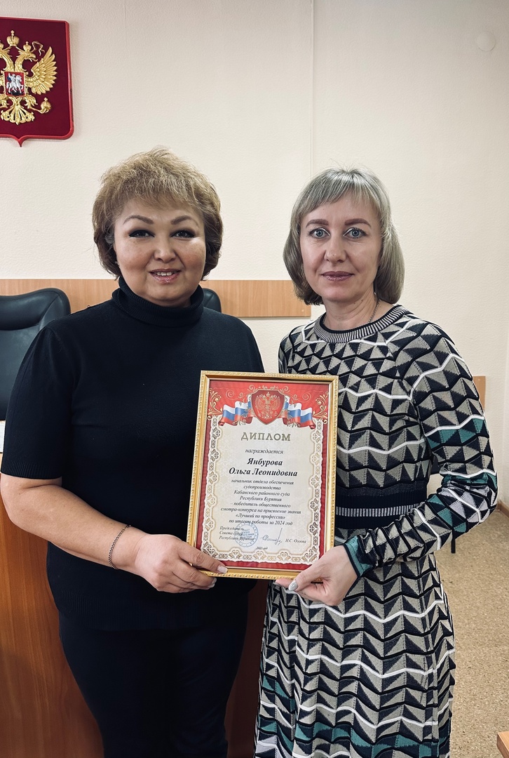 Начальнику отдела обеспечения судопроизводства Кабанского районного суда Республики Бурятия Янбуровой Ольге Леонидовне присвоено звание «Лучший по профессии» по итогам работы за 2024 год с вручением диплома. ![]() |