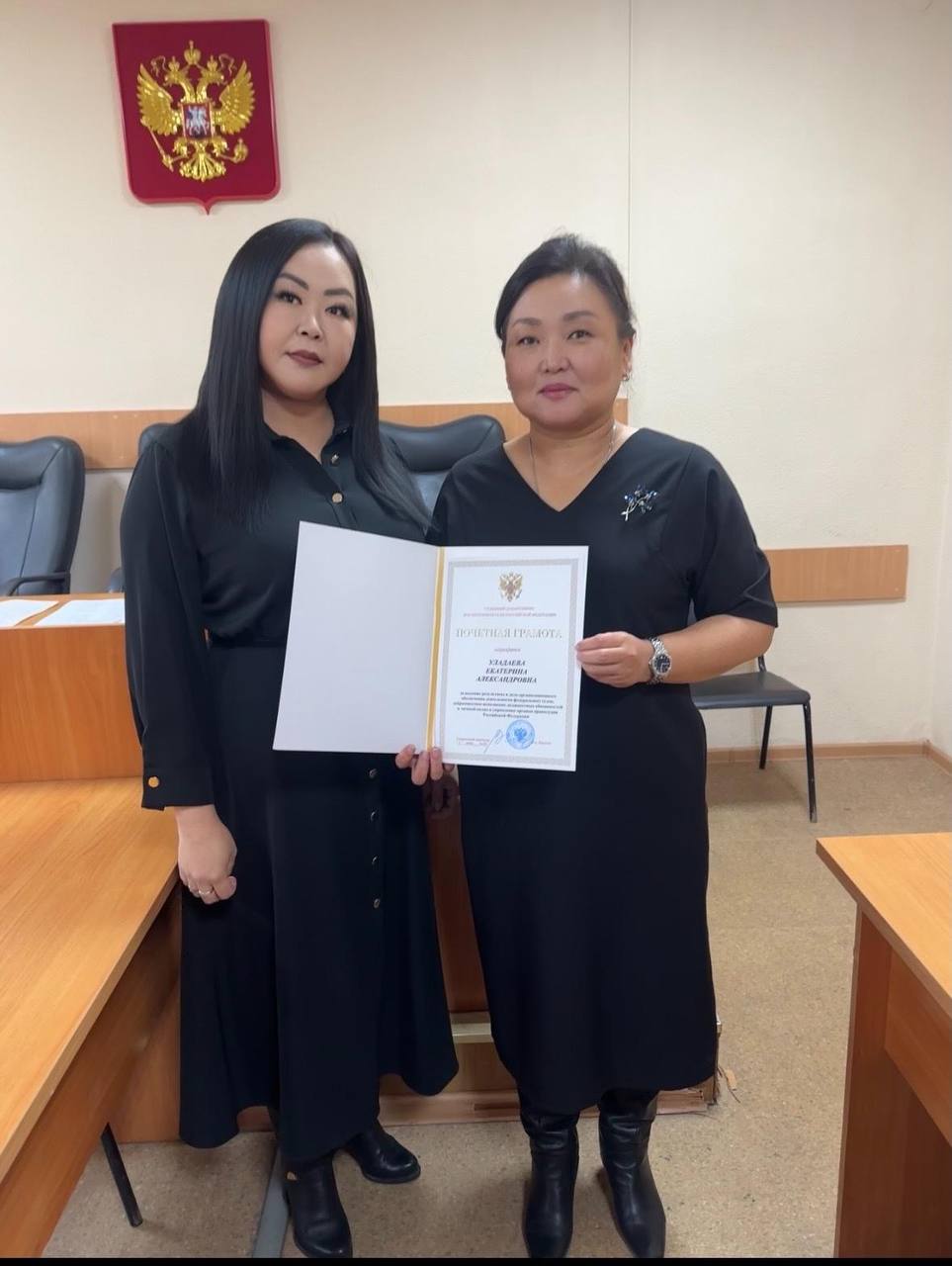 О награждении Приказом Судебного департамента при Верховном Суде Российской Федерации от 03 июня 2025 года № 673-л/с помощник судьи Кабанского районного суда Республики Бурятия Уладаева Екатерина Александровна награждена Почетной грамотой Судебного департамента при Верховном Суде Российской Федерации за высокие результаты в деле организационного обеспечения деятельности федеральных судов общей юрисдикции и федеральных арбитражных судов, добросовестное исполнение должностных обязанностей и личный вклад в укрепление органов правосудия Российской Федерации.